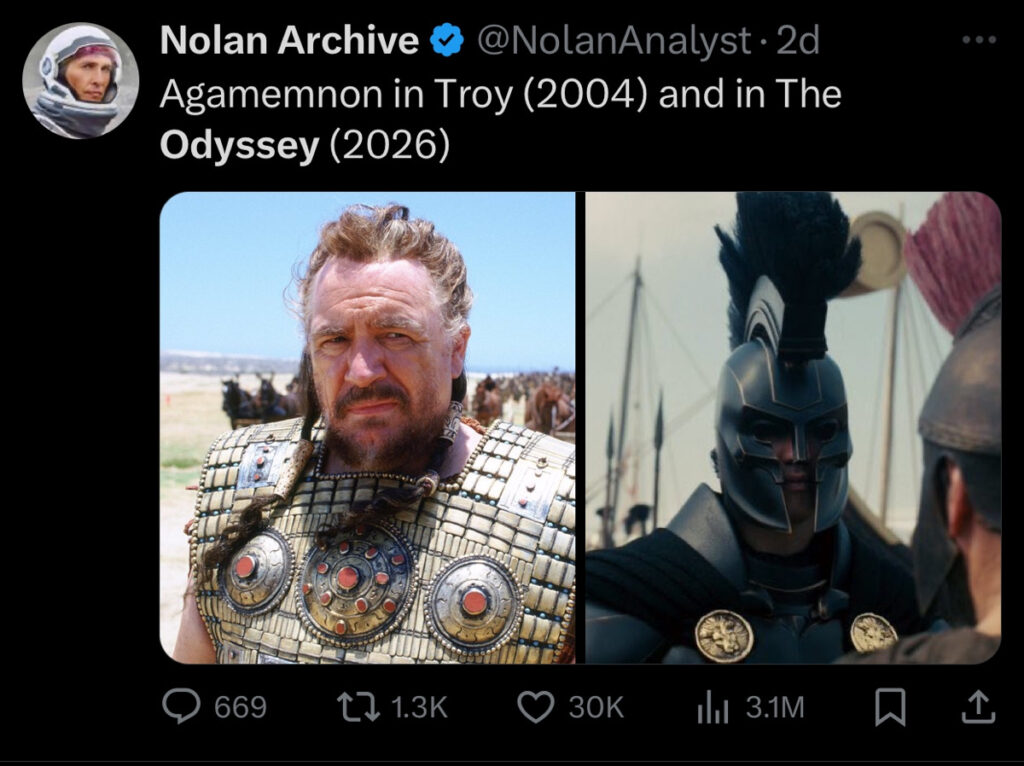 اما منظور از تعریف نظر منتقدان و مخاطبان نسبت فیلم تاریخی Troy چی بود؟ در نهایت باید به این نتیجه رسید که دقت تاریخی نیز دلیلی بر موفقیت فیلم نیست. فیلم برای کشاندن مخاطبان به سینما و نگه داشتنشان روی صندلی نیاز به درام و عناصر سینمایی دارد. حال پیش از آنکه جهت خاصی به این مطلب بدهیم، بیایید حواشی اخیر فیلم Odyssey کریستوفر نولان را بررسی کنیم.